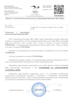 Извещение об отключении кв 82, 83 79 корпус 3